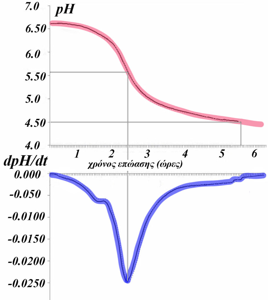 Μετά από μια επώαση χρονικού διαστήματος 3.5 ωρών, εγώ μετρώ πάλι την τιμή pH, αυτών, των δύο ”γαλάτων”.