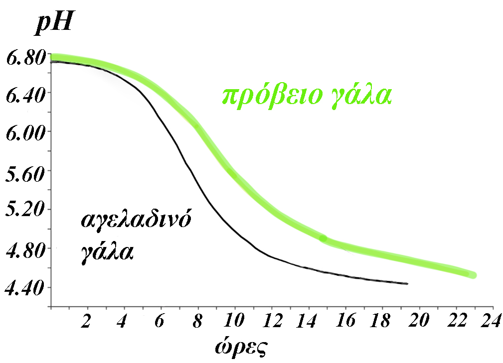 Αυτή, η διαφορά, στην τιμή pH εκφράζει την διαφορετική ικανότητα, την οποία έχει το εκάστοτε γάλα να ”αντιστέκεται” σε μεταβολές στο pH του.