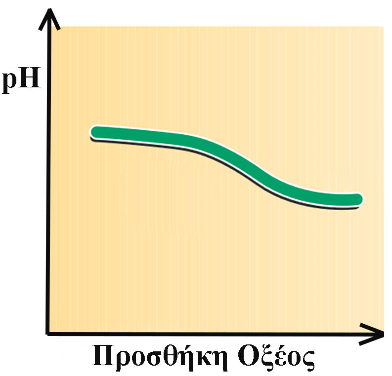 Αυτό σημαίνει ότι χρειάζεται περισσότερη ποσότητα οξέος για να μειωθεί η τιμή pH, του γάλακτος, από την τιμή 6.0 στην τιμή 5.50, σε σχέση, με την ποσότητα, του οξέος, η οποία απαιτείται για να μειωθεί το pH από την τιμή 6.50 στην τιμή 6.0.