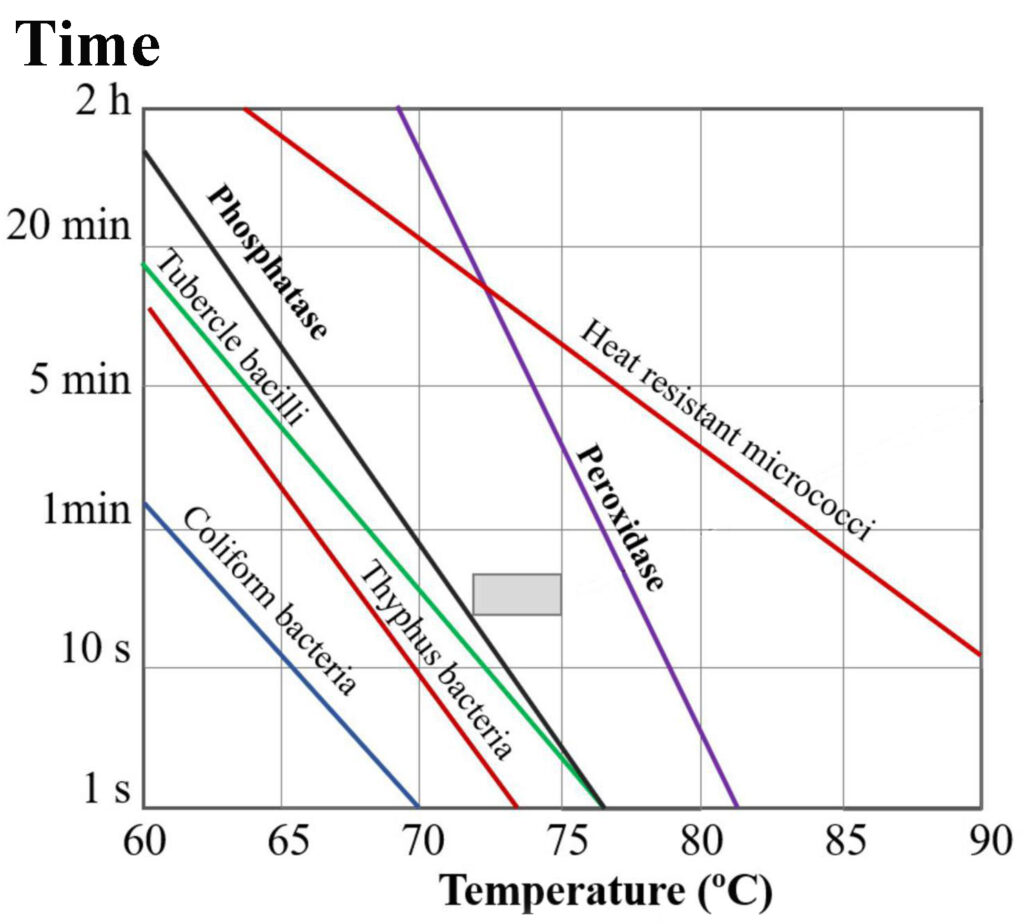 Υπολογίστε, ότι, αυτό, το ανώτατο όριο, περίπου, είναι: 65 με 66°C για 30 λεπτά (Παστεριωτές κλειστού τύπου – batch), ή, 78 με 80°C για 15 δευτερόλεπτα (Παστεριωτές ανοικτού τύπου με εναλλάκτες θερμότητας).