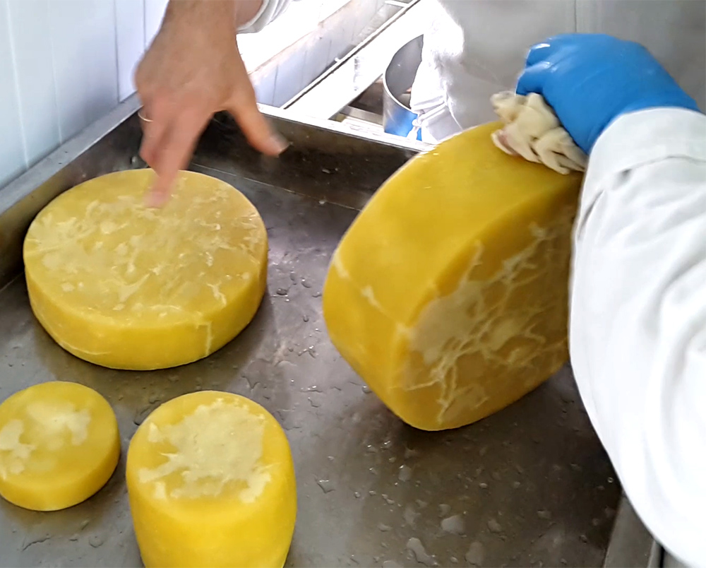 Μέσα σε λίγες ημέρες έχει δημιουργηθεί η επιδερμίδα του τυριού. Ήδη το τυρί Κασέρι έχει αναπτύξει ένα χαρακτηριστικό υποκίτρινο χρώμα.