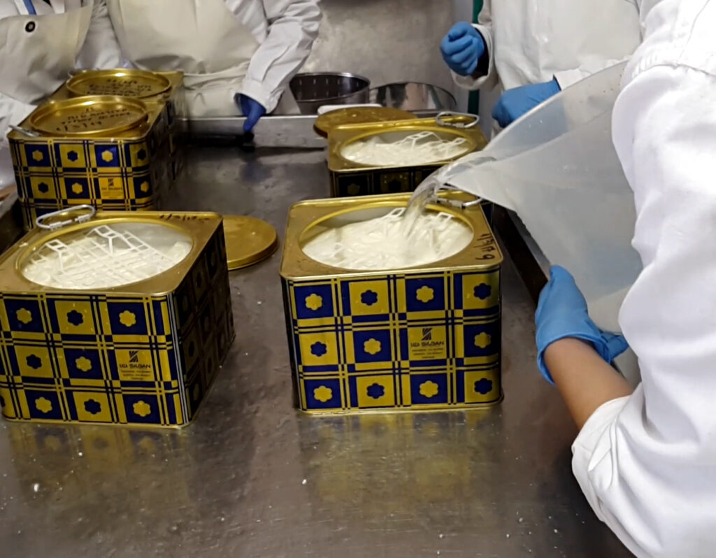 Τα δύο είδη τυριών τοποθετούνται σε δοχεία με άλμη, η οποία έχει συγκέντρωση 7% κ.β., σε NaCl.