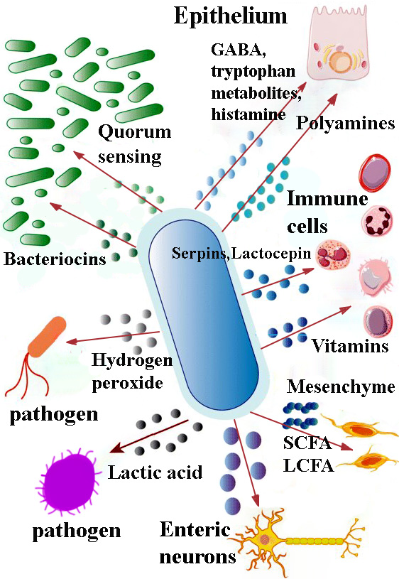 Αυτός ο αυξημένος αριθμός των γονιδίων των βακτηρίων του παχέος εντέρου αντικατοπτρίζει μια πολυδιάστατη δράση, η οποία επιτρέπει σε αυτά τα βακτήρια να παράγουν χιλιάδες είδη μεταβολιτών, να παράγουν χιλιάδες είδη συστατικών μέσα στο έντερό μας.